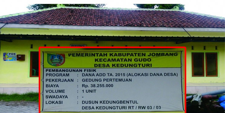 Masih Sungkono, bahwa dana swadaya masyarakat dicantumkan di RAB sebesar Rp. 500.000 saja. Namun di papan nama kegiatan yang ditempelkan di gedung serbaguna tidak tercantum, justru dicantumkan ADD sebesar Rp. 38.255.000.