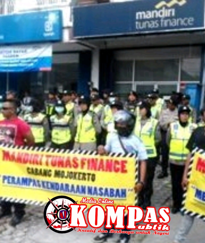 Mojokerto. kompaspublik.com– Diduga gara-gara main rampas kendaraan atau melakukan tindakan semena-mena atau arogansi untuk menguasai barang jaminan nasabah dengan menghalalkan segala cara. Maka pada hari ini, Selasa (10/04/18) pihak Bank pembiayaan (Mandiri Tunas Finance Mojokerto) di gruduk ratusan LSM Mojokerto Watch untuk menuntut keadilan atas perampasan mobil truck milik Kusmianto, Warga Pungging – Mojokerto pada hari Kamis (29/03/18) oleh orang-orang suruhan Mandiri Tunas Finance, alias Deb Colector tanpa hak secara fidusia atau putusan dari pengadilan diwilayah Pasuruan.