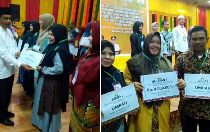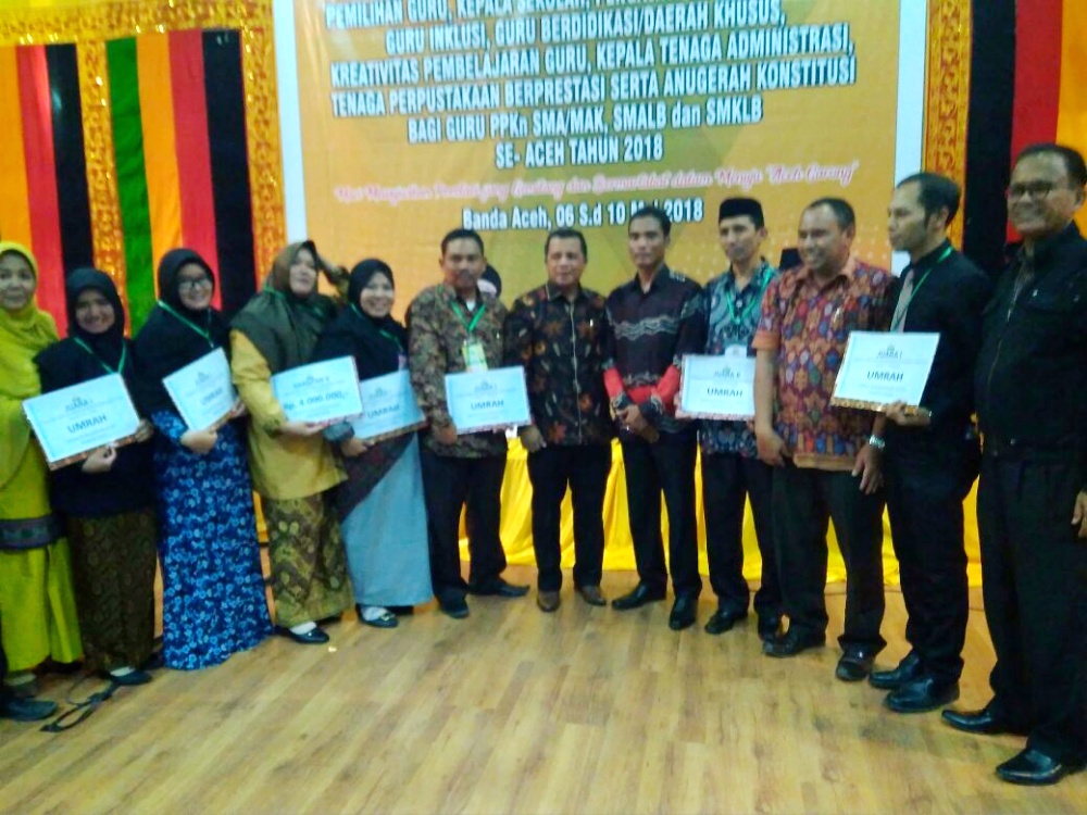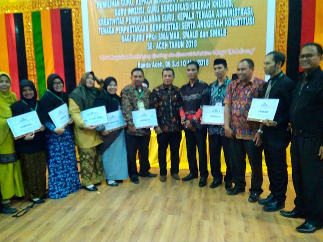 Pada malam penutupan dan pengumuman pemenang/juara Tenaga Pendidik dan Kependidikan Propinsi Aceh tahun 2018 yang dilaksanakan pada Rabu Malam 9 Mei 2018 langsung dihadiri oleh Kepala Dinas Pendidikan Aceh, Syaridin, S.Pd, M.Pd.