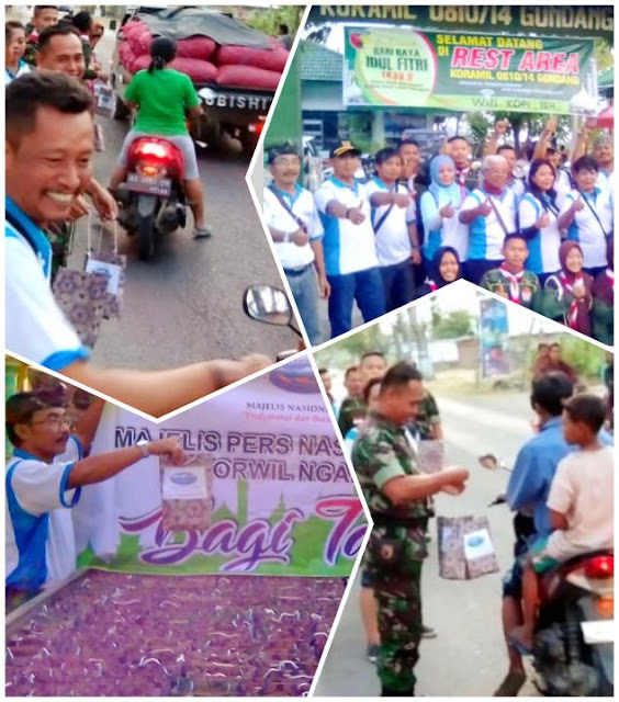 Nganjuk. kompaspublik.com- Keluarga besar Majelis Pers Nasional (MPN) pada hari Minggu sore (11/05/18) telah mengadakan kegiatan bagi-bagi takjil kepada pengguna jalan dan warga dikawasan Kecamatan Gondang Kabupaten Nganjuk dengan dibantu oleh anggota Koramil 0810/14 Gondang bersama Satgas Pramuka setempat. Sehingga kondisi bagi-bagi takjil tersebut semakin ramai dan penuh semangat.
