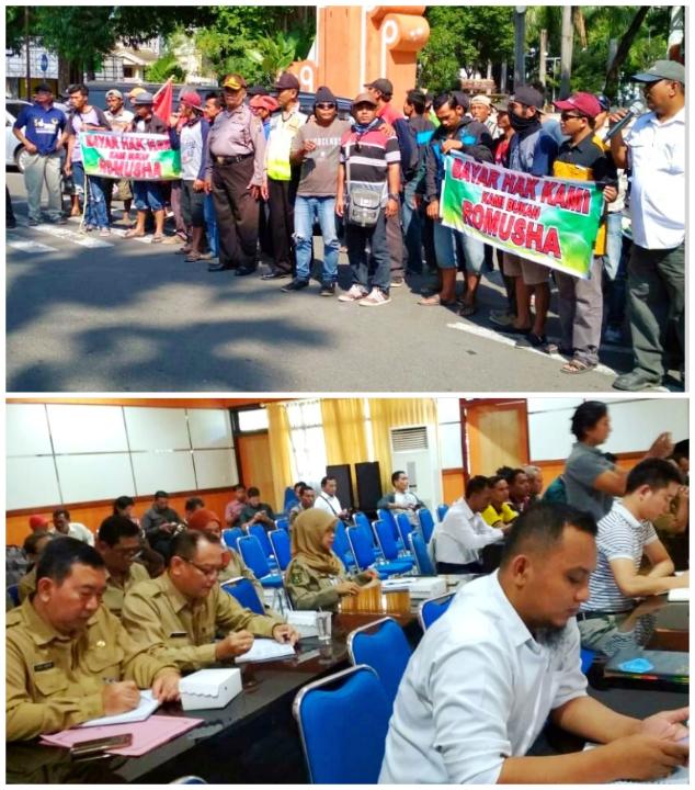 Sedangkan pada pukul 09.50 WIB, massa pengujuk rasa tiba di pendopo Pemda setempat. Dan Moh. Subhan dan perwakilan massa lainya, kembali melakukan orasi.