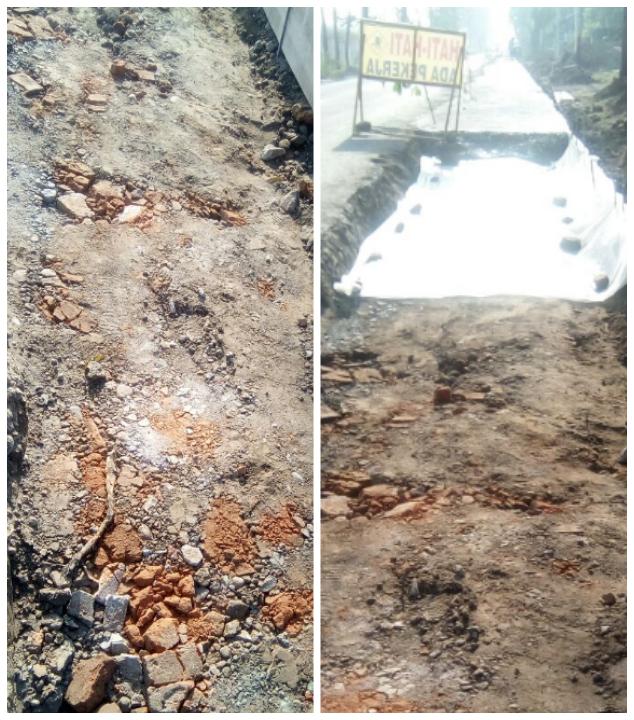 Selain itu, tampaknya bahan urug yang digunakan untuk pengerjaan pelebaran jalan tersebut, ada indikasi kurang bermutu kwalitasnya. Bahkan kedalaman galian yang seharusnya 30 cm, tapi disinyalir tidak merata. Hal ini adanya kedalaman galian dibagian tengah dibuat agak tinggi serta ditutupi oleh plastik oleh pihak PT. Asri Jaya Saputra Perkasa (AJSP) sebagai cara dalam menyiasati dugaan kecurangannya didalam pengerjaan pelebaran jalan Dimong-Sendangrejo tersebut, sehingga setiap panjang galian 50 meter sampai 100 meter langsung di cor.