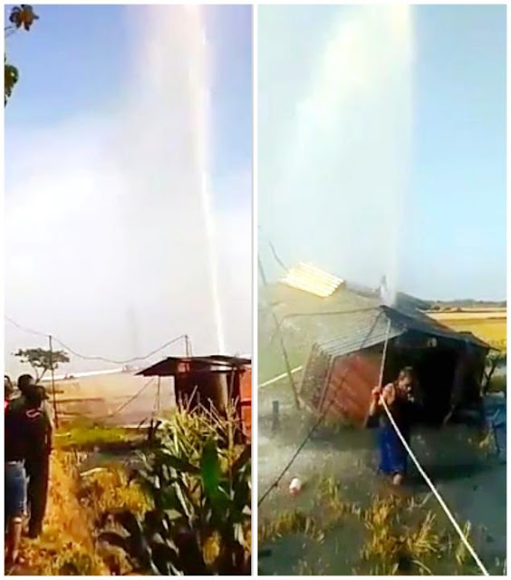“Sepertinya semburan air yang mencapai150 meter. Ini kekuatan yang dahsiat,” ujar Kapolsek Widodaren, AKP Juwahir kepada wartawan di lokasi, Minggu (5/8/2018).