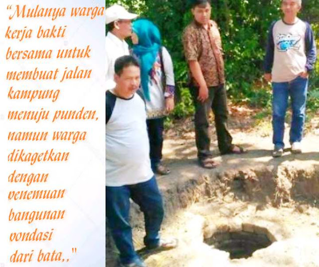 “Mulanya warga kerja bakti bersama untuk membuat jalan kampung menuju punden, namun warga dikagetkan dengan penemuan bangunan pondasi dari bata,,” kata Suliyono (42), warga Watesari dilokasi penemuan.