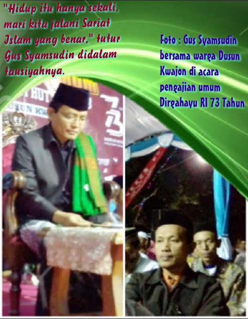 “Hidup itu hanya sekali, mari kita jalani Sariat Islam yang benar,” tutur Gus Syamsudin didalam tausiyahnya.