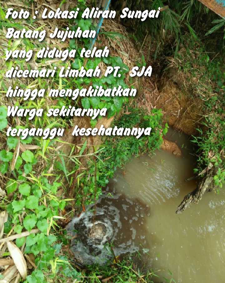 Menurut Apadol, Datuk Rio (Kepala Desa, red) Rantau Panjang saat dikonfirmasi media independennews.com membenarkan adanya dugaan Limbah dari sisa produksi PT. SJA tersebut sengaja di buang ke aliran sungai Batang Jujuhan. Bahkan saat ini dampak Limbah yang mengalir ke sungai Jujuhan itu, disinyalir sudah mengganggu kesehatan banyak warga setelah mengkonsumsi air Sungai tersebut.