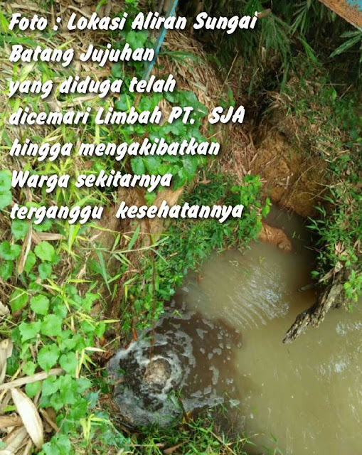 “Sungai Jujuhan telah tercemar oleh Limbah, saya menduga sungai jujuhan tercemar Limbah yang berasal dari PT. SJA. Jadi saat ini dampak pencemaran sungai sangat dirasakan warga, seperti yang dialami salah seorang anak Dusun Rantau Panjang mengalami sakit perut dan di bawa langsung ke Pukesmas terdekat,” ulas Apadol yang dikutip independennews.com.
