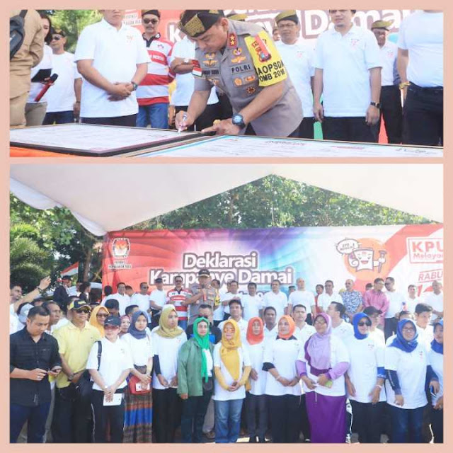Kegiatan Deklarasi tersebut diawali karnaval jalan sehat dengan di iringi marching band. Selanjutnya Kapolda Kepulauan Riau menyampaikan himbauan Kamtibmas serta memimpin yel yel Pemilu Damai.