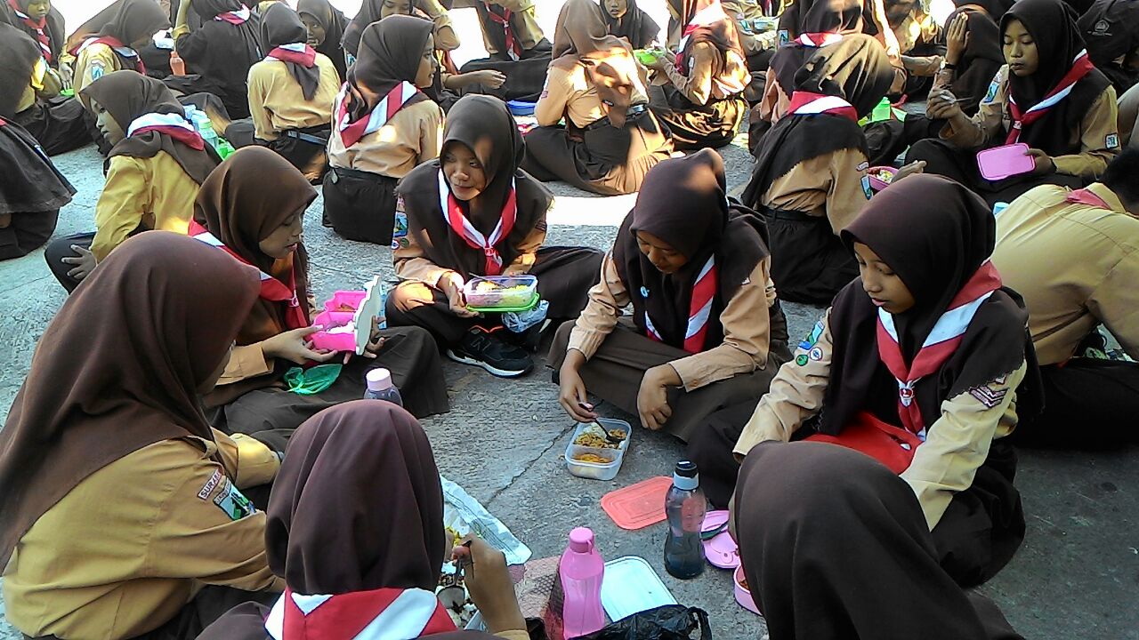 Kegiatan jumat curhat ini diawali dengan sholat dhuha bersama di halaman sekolah, lalu kembali ke kelas untuk sarapan bersama. Setelah itu ada pembagian pin disiplin untuk siswa.
