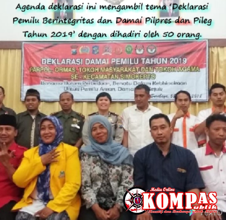 Media Online Kompas Publik- Kian dekatnya Pemilihan Umum 2019 yang dimulai dari Pemilihan Legislatif hingga Pemilihan Presiden, menjadi ajang pesta rakyat yang tentunya akan menyibukkan banyak pihak. Untuk itu, guna mengantisipasi berbagai kerawanan gangguan Kamtibmas dalam tiap Tahapan Pemilu 2019, Polsek Simokerto bersama Tiga Pilar menggelar Deklarasi Pemilu Damai 2019 di ruang Rupatama Polsek Simokerto pada hari Senin (08/10).