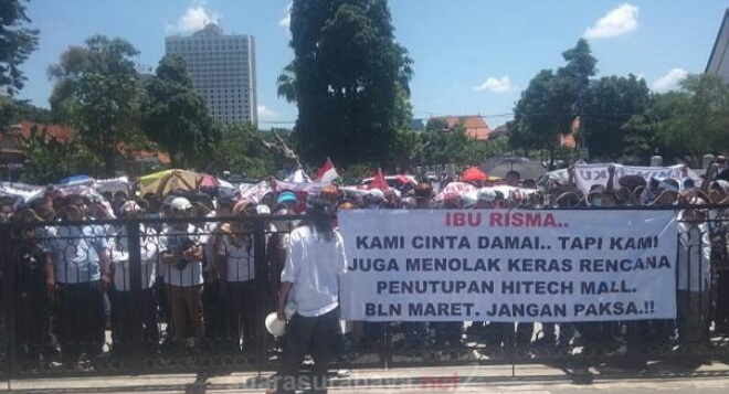 Ribuan Massa Pedagang Hi-Tech Mall Bertekat Bertemu Risma