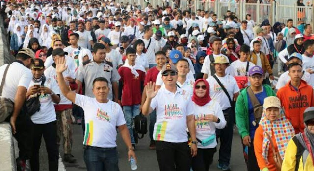 Kegiatan yang diikuti lebih dari 850.000 ribu tersebut juga dihadiri Bupati Gresik Dr. Ir. H. Sambari Halim Radianto, ST,’ MSi, Dandim 0817 Gresik Letkol Inf. Budi Handoko, S.Sos dan PJU Polres Gresik di Jembatan Suramadu, Jawa Timur, Minggu (17/3).
