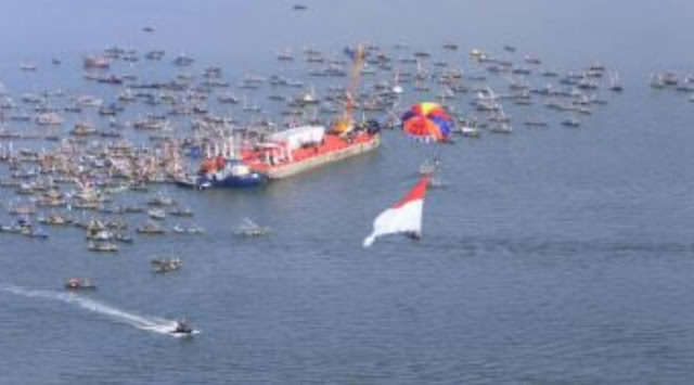 “Saya sudah jalan di laut ada 1.000 kapal nelayan, ternyata melebihi 2.000 nelayan. Luar biasa antusias masyarakat Jatim yang hadir,” ujarnya.