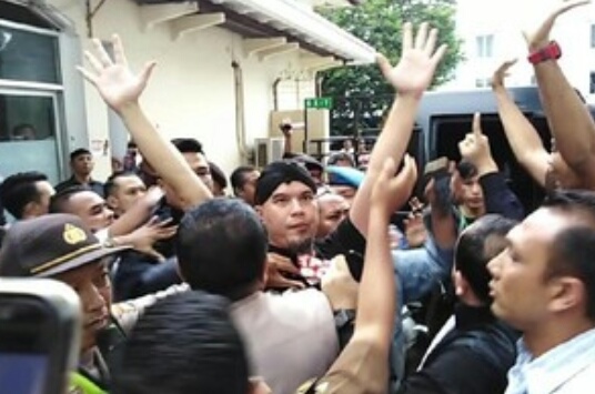 “Sudah puas fotonya?” kata dia. “Allahuakbar!” tambah Dhani, sembari mengacungkan dua jarinya, sebelum masuk ke mobil tahanan.