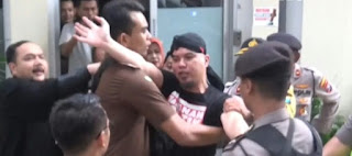 “Ini petugas oknum kadang-kadang berlebihan, ini nggak bolehlah ya, kaya napi teroris aja ditarik-tarik lehernya, apa-apaan nggak boleh, saya lawan kalau pakai cara-cara seperti itu,” kata diadi Pengadilan Negeri (PN) Surabaya, Kamis (11/3), sempat diwarnai keributan.