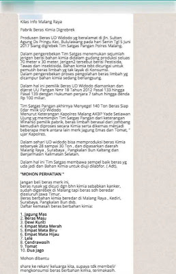 Media Online, kompaspublik.com- Masyarakat mendapatkan pesan berantai tentang penggrebekan pabrik berasa kimia. Lebih tepatnya pabrik beras limbah.