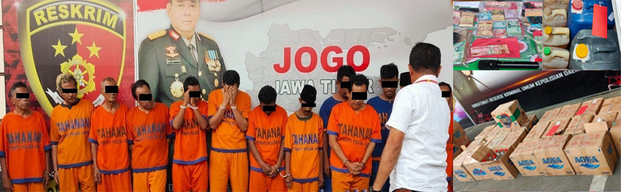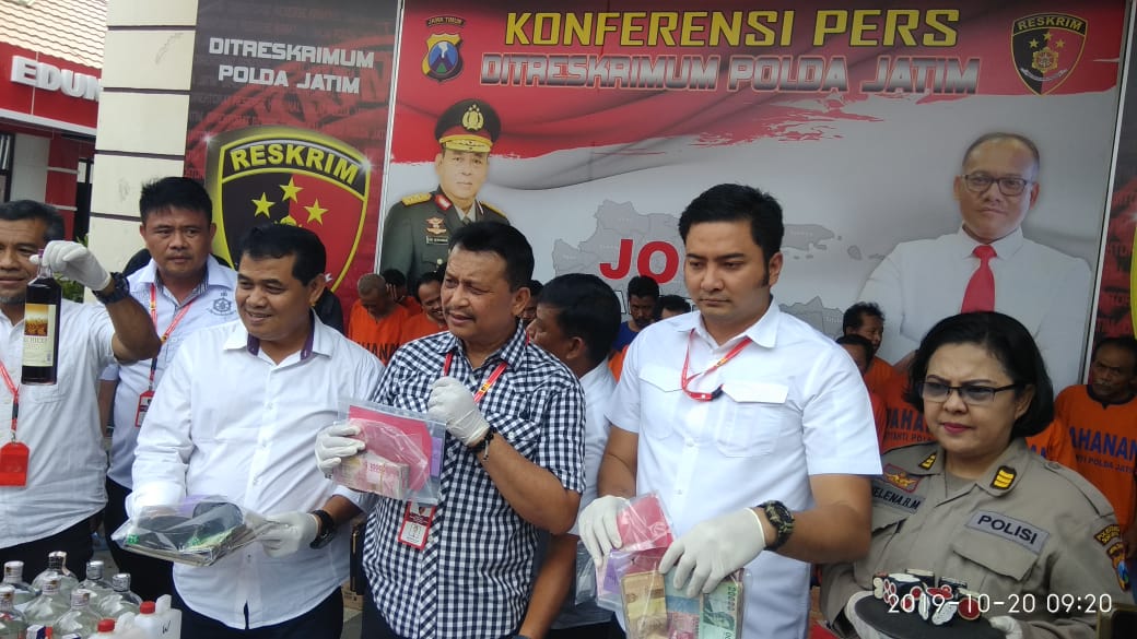 Direktur Reskrimum Polda Jatim Kombes Pol Gidion Arif Setyawan,melalui Kabag Binopsnal Ditreskrimum Kompol I Gusti Ketut Suastika didampingi Kanit V Subdit III Jatanras Ditreskrimum Polda Jatim, AKP Muhammad Aldi Sulaiman kepada awak media mengatakan untuk kasus miras, pihaknya mengamankan dua belas tersangka.