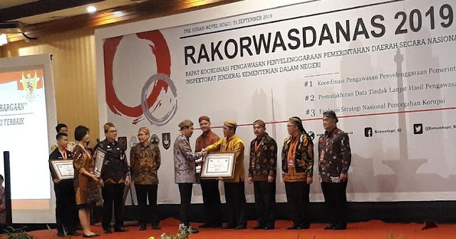 Inspektur Provinsi Jatim Dr Helmy Perdana Putra MSi mengatakan, pemberian penghargaan tersebut telah diberikan pada Rapat Koordinasi Pengawasan Penyelenggara Daerah Secara Nasional Tahun 2019, di Solo, Jawa Tengah, Rabu (25/9).
