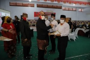| Kepala Kanwil Kemenkumham Jatim, Krismono saat menyerahkan remisi umum dalam rangka HUT RI ke 75 |