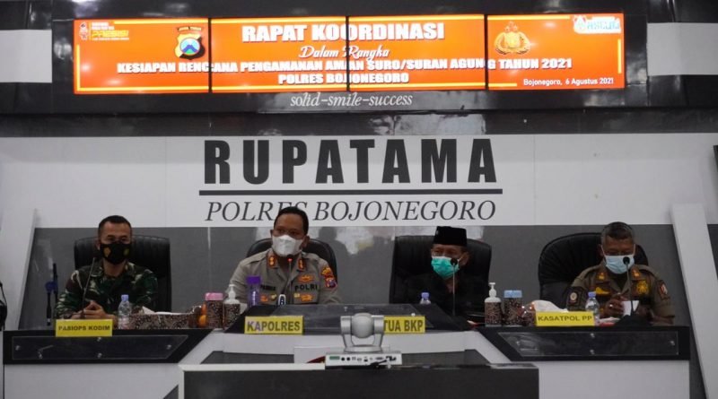 Kapolres Bojonegoro AKBP EG Pandia, S.I.K., M.M., M.H langsung memimpin Rapat Koordinasi (Rakor), yang dihadiri juga oleh para Pejabat Utama (PJU) Polres Bojonegoro dan Ketua PSHT Pusat Madiun Cabang Bojonegoro serta hadir Ketua Bojonegoro Kampung Pesilat (BKP) Wahyu Subakdiono, Ketua PSHW Sasmito, juga TNI maupun Satpol PP yang berada di Gedung AP I Rawi Bojonegoro, Jumat 6 Agustus 2021.