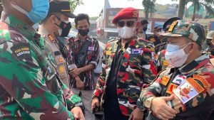 Anggota TNI dan anggota Ormas LMP di lokasi pembubaran kerumunan.