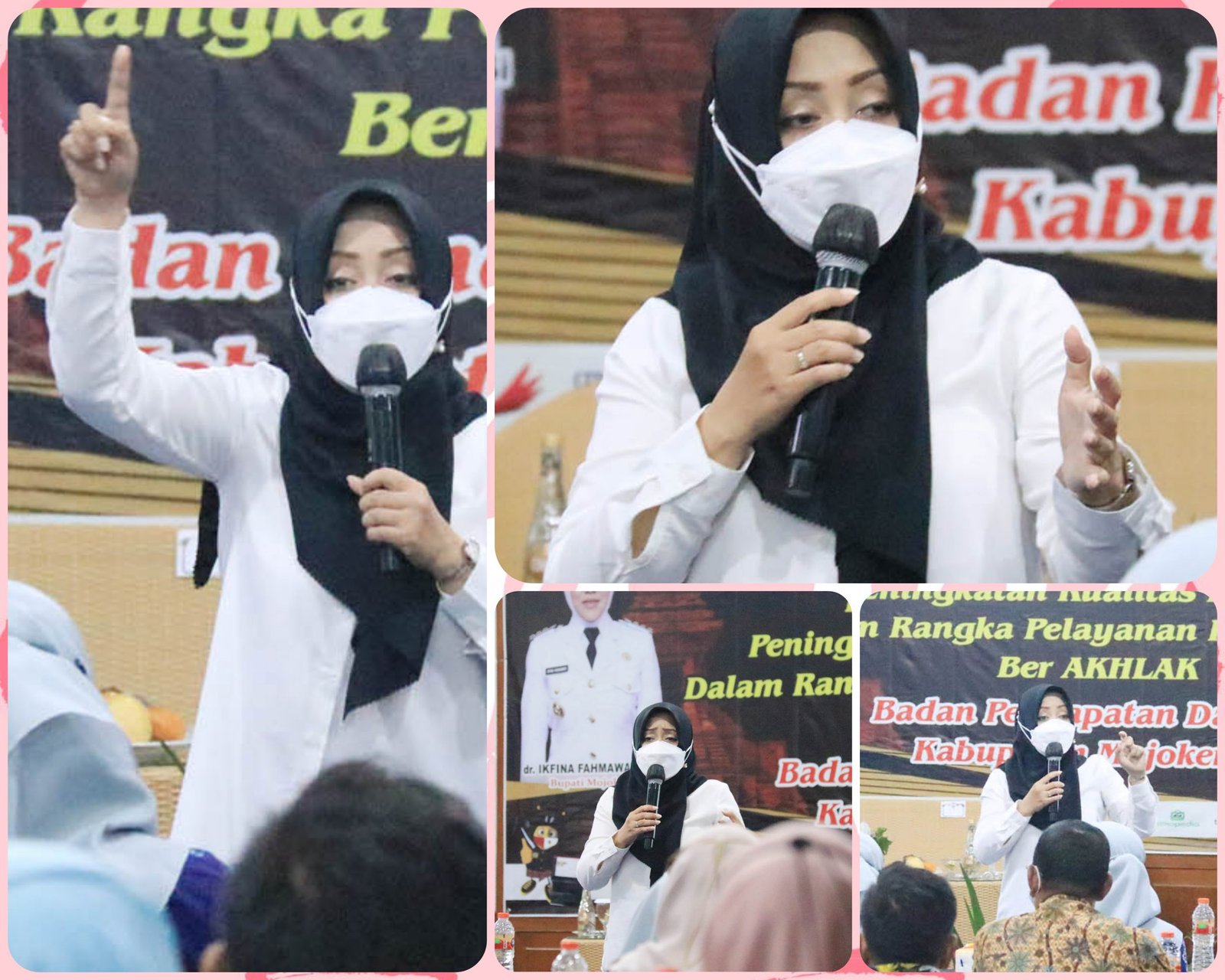 Mojokerto, Media Allround- Ikfina Fahmawati menjadi narasumber dalam agenda Bimbingan Teknis (Bimtek) Peningkatan Kualitas Pegawai Badan Pendapatan Daerah (Bapenda) Kabupaten Mojokerto, Rabu (23/2). Dalam kesempatan ini, Ikfina memberikan materi dan motivasi untuk para pegawai baik ASN maupun non-ASN untuk menerapkan core values BERAKHLAK yang telah ditetapkan oleh pemerintah pusat. “Core values BERAKHLAK sudah resmi ditetapkan Presiden RI Joko Widodo, core values BERAKHLAK sendiri merupakan akronim dari Berorientasi Pelayanan, Akuntabel, Kompeten, Harmonis, Loyal, Adaptif, dan Kolaboratif,” tuturnya.
