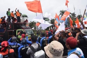 “Partai Buruh ini sebagai alat untuk kita bisa masuk ke parlemen. Agar kita bisa suarakan keresahan-keresahan kita, keresahan masyarakat. Apakah kalau Partai Buruh masuk ke parlemen teman-teman (buruh) berhenti mobilisasi? Tidak, kita akan terus mobilisasi,” kata salah satu orator dari atas panggung, Sabtu (14/5/2022).
