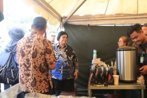 Bupati Ikfina juga berkesempatan mengunjungi beberapa pameran hasil perhutanan sosial seperti berbagai produk olahan kopi, madu, rempah-rempah, sirup pala yang sudah berbentuk kemasan siap jual dan kuliner makanan seperti samiler singkong.