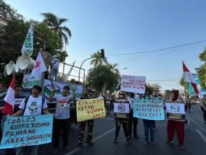 Surabaya, Media Allround – Puluhan massa yang tergabung dari berbagai elemen masyarakat Surabaya menggelar aksi deklarasi mendukung kotak kosong di Pemilihan Wali Kota (Pilwalkot) Surabaya, Selasa (17/9/2024) sore.