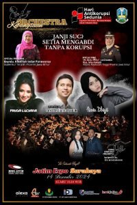 Surabaya, Media Allround – Pagelaran Orchrestra Kebangsaan bertema “Janji Suci Setia Mengabdi Tanpa Korupsi” perwujudan semangat kejujuran MAKI Jatim di Jatim Expo Surabaya, Sabtu (14/12/24).