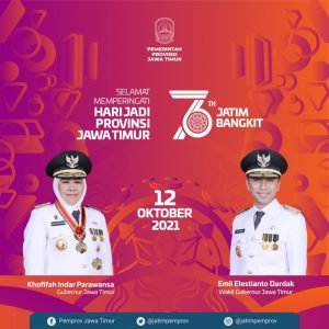 Surabaya, Media Online Kompaspublik.com– Provinsi Jawa Timur berulang tahun yang ke-76 pada 12 Oktober hari ini. Gubernur Jawa Timur, Khofifah Indar Parawansa optimistis, provinsi yang akan dipimpinnya akan bangkit dari Pandemi Covid 19 dan ekonomi segera pulih. Khofifah juga yakin Jawa Timur dapat terus menginspirasi, serta menjadi teladan dan panutan terutama dalam membangun hidup guyub …