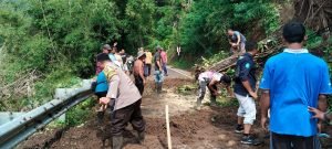 Polisi bersama TNI dan Warga Bersihkan Longsor Jalur Wisata Telaga Ngebel
